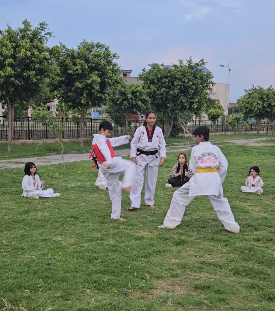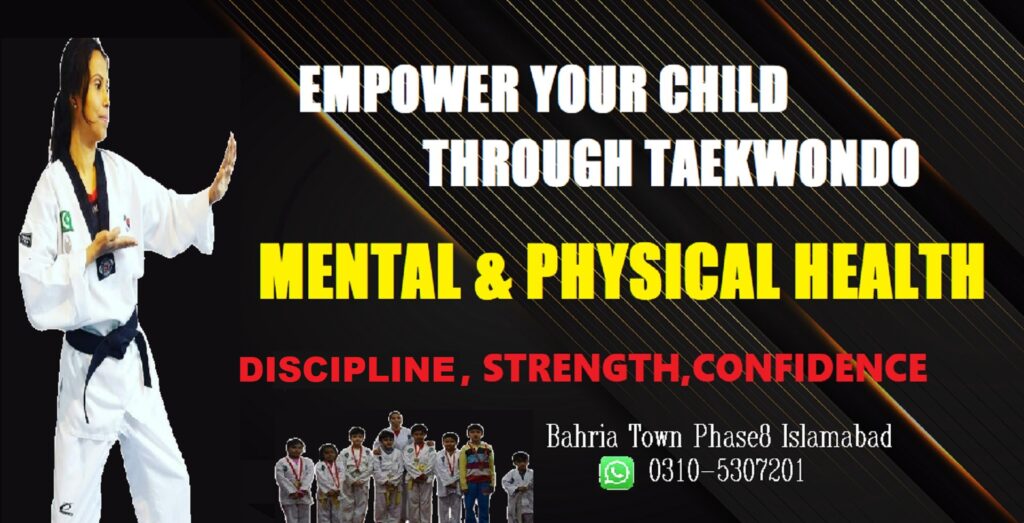 I am a Senior 3rd Dan Taekwondo Instructor, a national and International gold medalist, and one of Pakistan’s top female martial arts champions with over 100 national trophies. I have proudly represented Pakistan in the World Taekwondo Championship held in the UK (London), participating three times and achieving 2nd and 3rd positions.